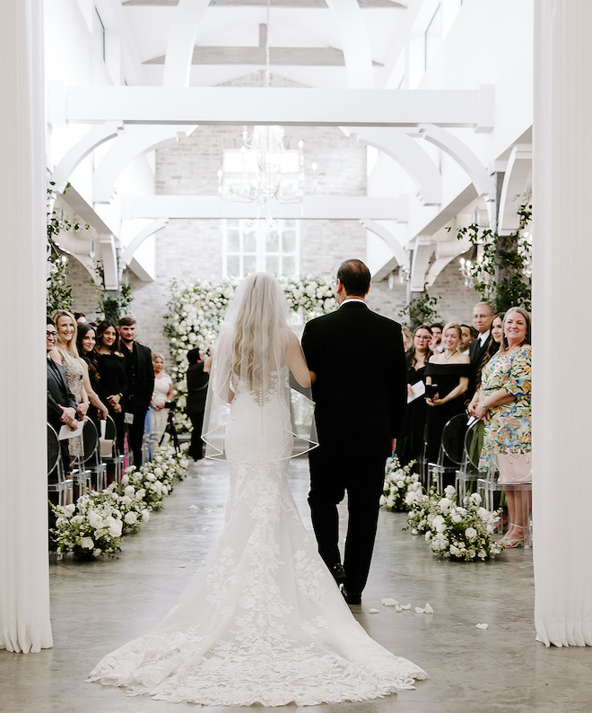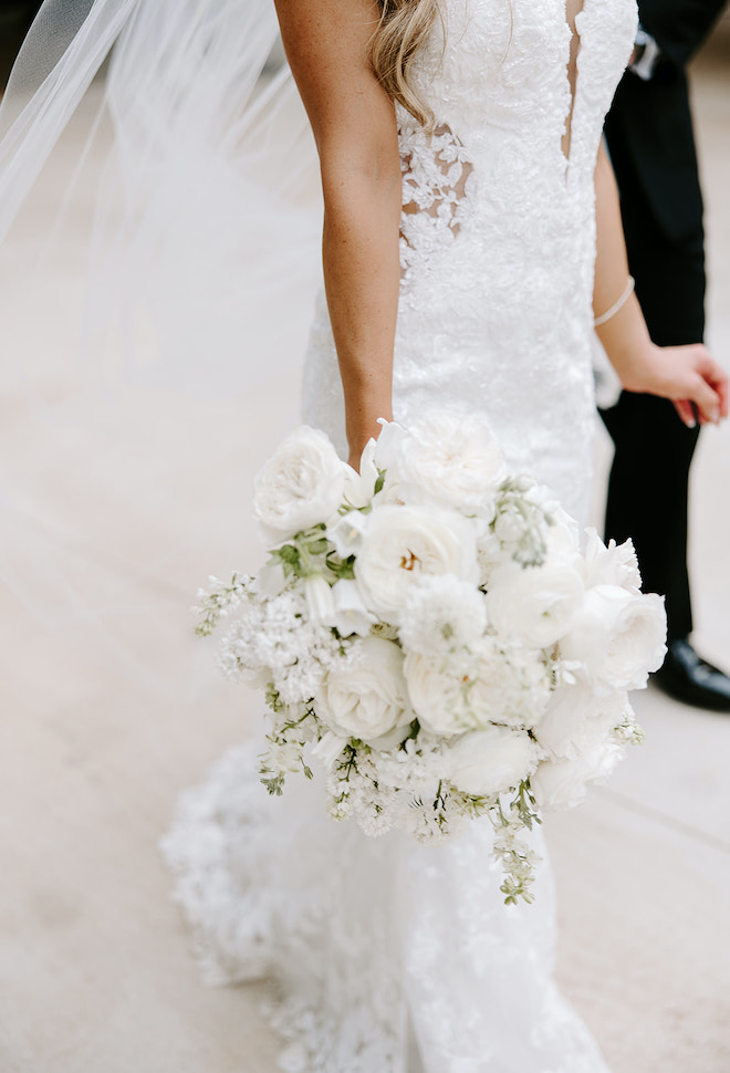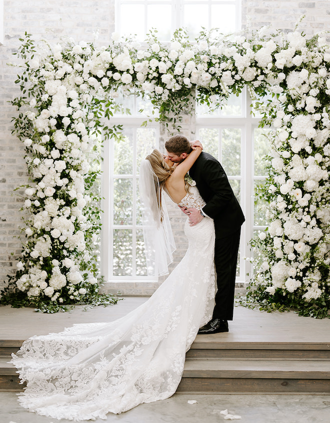 On April 8, 2023, Nikki and Connor pledged their love in an elegant, timeless wedding ceremony captured beautifully by Erika Geier Photography. The couple’s ceremony overflowed with lush greenery and white floral installations, giving their spring wedding a timeless and classic look. “As the moment finally came and the curtains came back to reveal me, Connor and I made eye contact, and the feeling of love overpowered us,” the bride says.