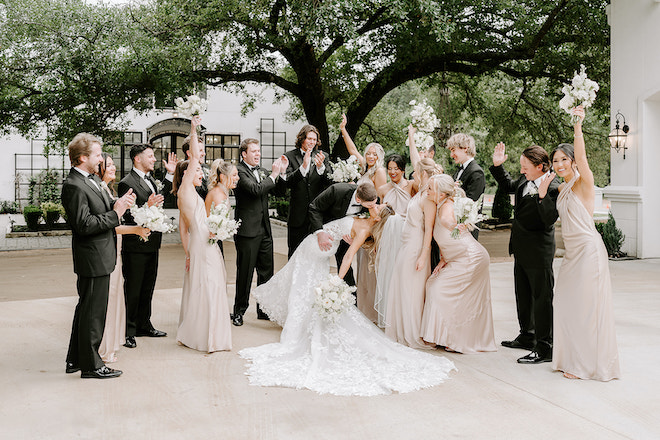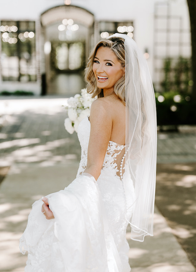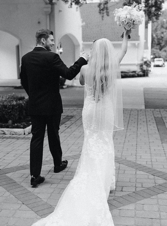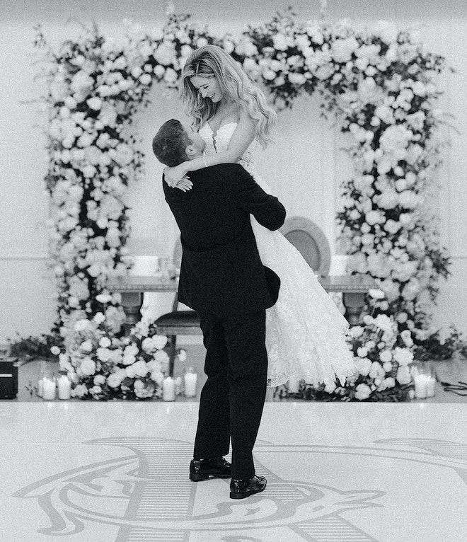 In March of 2022, Connor planned a romantic dinner at a Houston restaurant where the two shared countless memories. Nikki was led to a gazebo lined with red and white rose petals, where Connor expressed his love and got down on one knee. “It was the easiest yes of my life,” the bride says. The surprise continued as their families awaited upstairs to celebrate the future Mr. & Mrs. Sweeney.