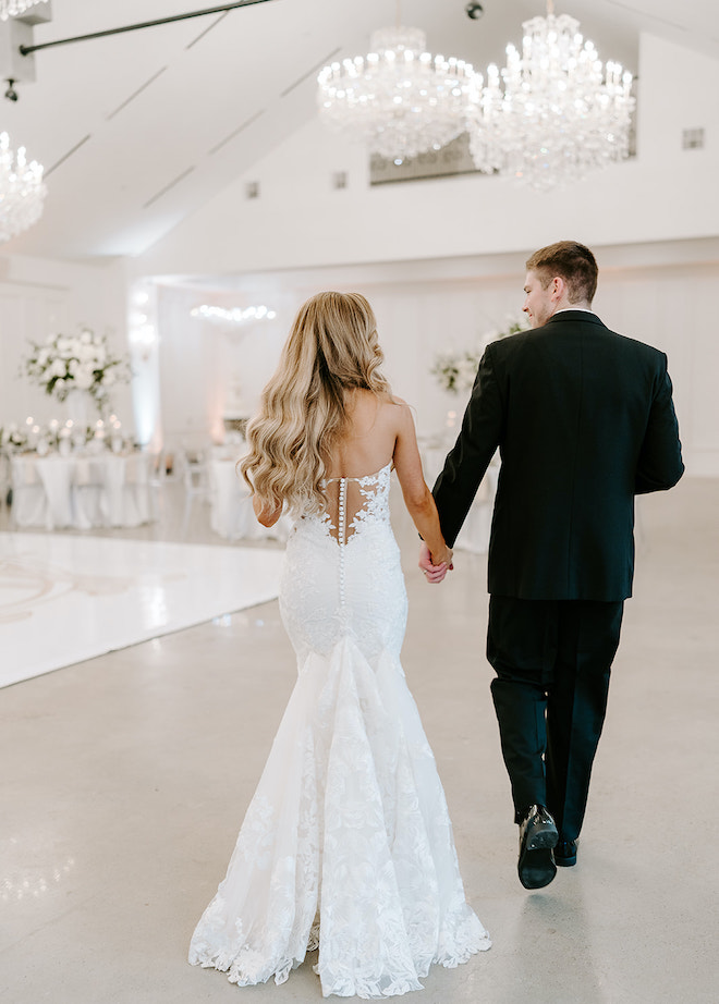 While guests indulged in signature cocktails handpicked by the bride and groom, Nikki and Connor walked around their reception space privately, admiring the year’s worth of hard work coming together. “As we circled the room laughing and pointing out everything that made our night special to us, we couldn’t help but feel so blessed that this beautiful night was all for us,” the bride says.