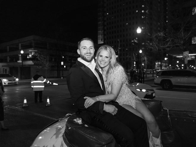 Their love story continued in Denver on one of their annual trips. Kristin planned every detail, certain a proposal wouldn’t happen on this vacation. But Logan had other ideas, arranging a romantic lunch and winery tour where he surprised his bride-to-be by getting down on one knee.