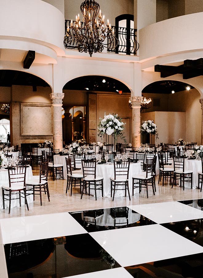To see more black-and-white wedding inspo at this chic venue, click here.