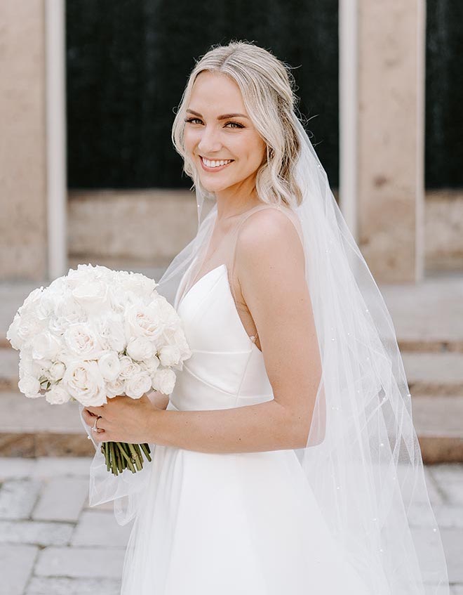 Contributing Vendors- Photo: Erika Geier Photography / Monica’s Brides & Touch of Glitz Flowers / Bavarian Cakery / Lovely Bride Houston / J&A Entertainment / Dimensions by Dan / Perfect Landing Travel / Sunny Hair and Makeup Artistry
