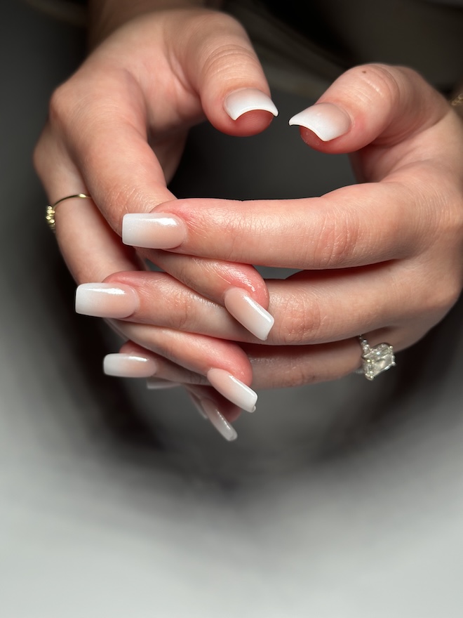 MNSTH: We always recommend opting for long-lasting options like dip powder or soft gel extensions (builder gel)—both provide a beautiful finish that can last for weeks. Choose a timeless, neutral color that complements all your dresses.