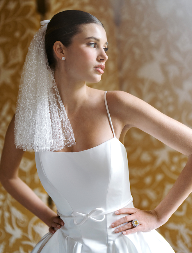 Short and chic, shoulder-length veils are the new must-haves and one of our favorite spring 2025 bridal trends. They’re a fresh take on traditional veil styles and perfect for brides looking for something a bit different.