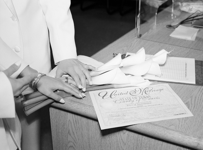 Scroll through to see their stylish courthouse wedding in Houston!