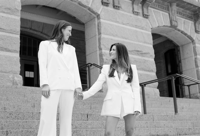 Love, style and a touch of Houston charm — Toni and Caroline made it official with a chic courthouse ceremony before jetting off for their extravagant wedding weekend in Lake Como, Italy.