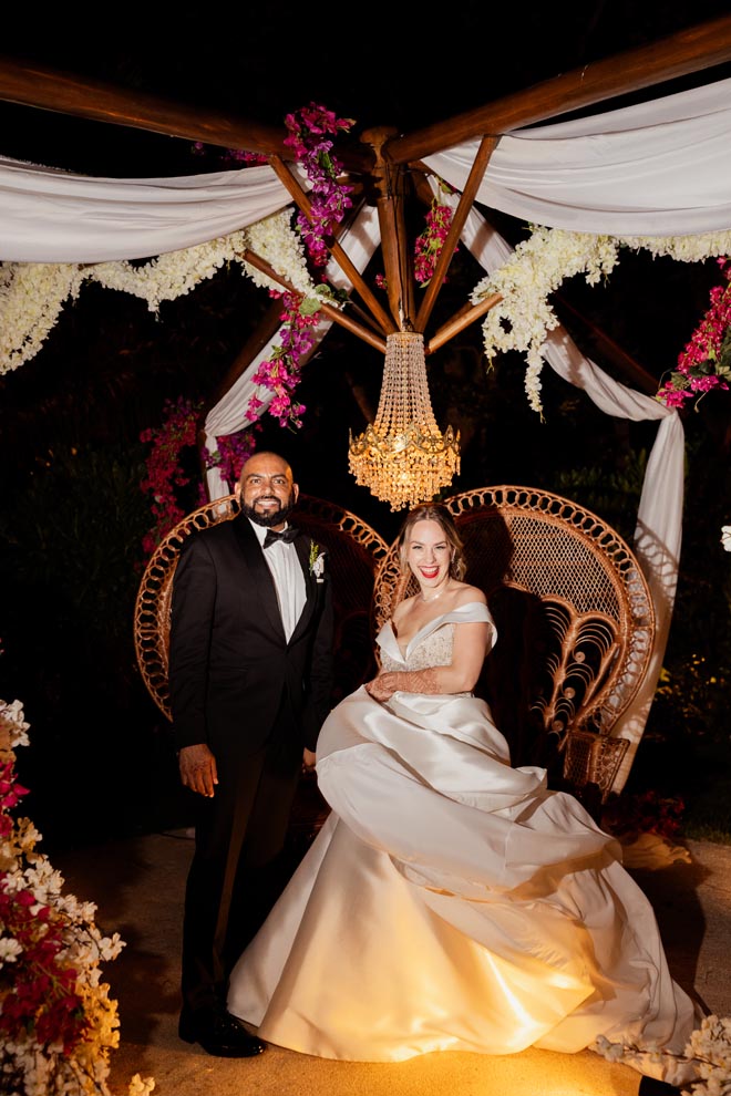 Polished Makeup & Hair had the family looking perfect for the big day. Later in the evening, Sam slipped into a traditional white wedding gown for their reception under the stars. The couple’s Indian-fusion wedding concluded with fireworks lighting the Mexican night sky. According to Sam, the whole day was perfect. “Every single moment was special; I wish we could do it all over again!” says the bride.