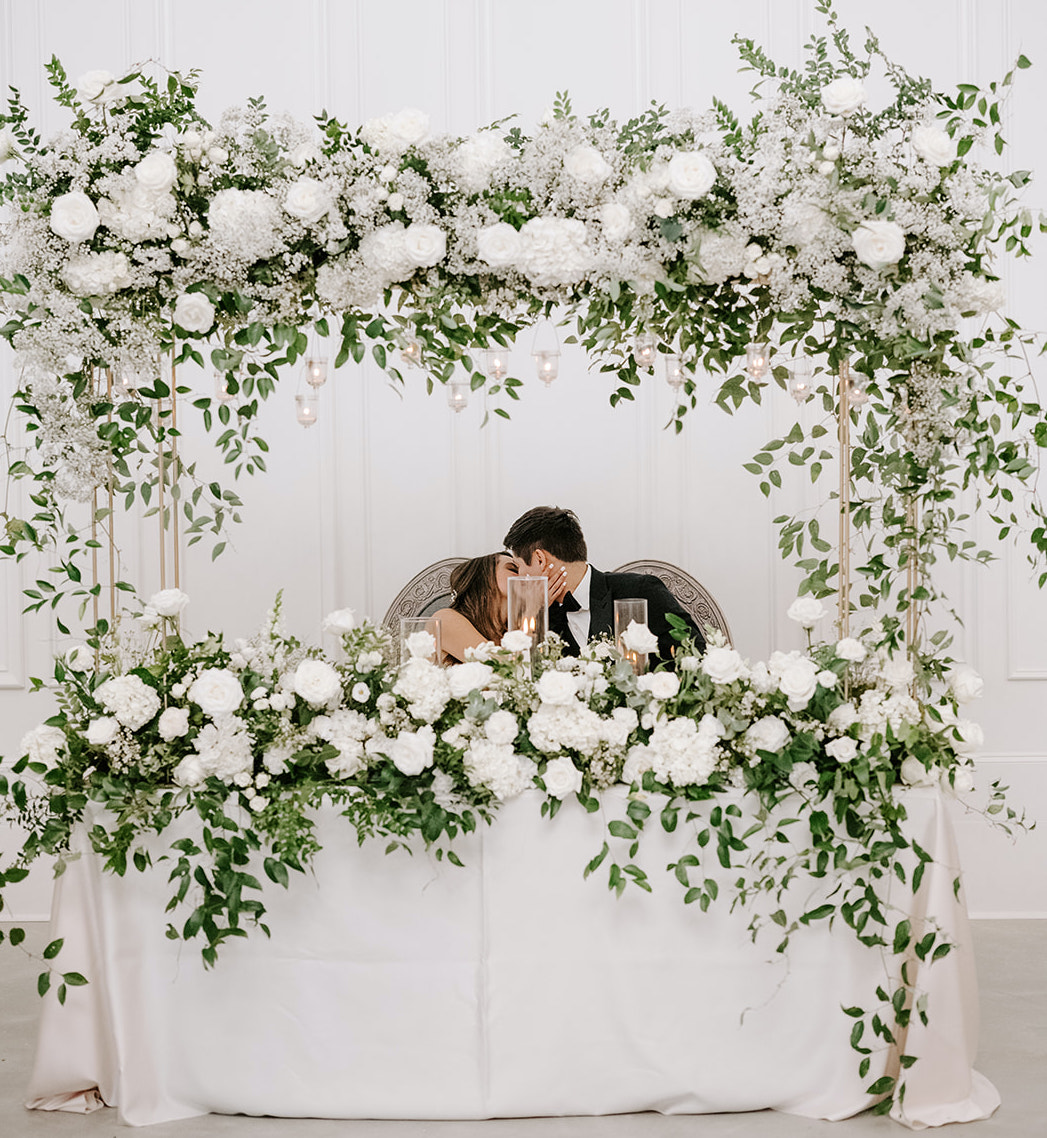 The reception was a joyous affair with the newlyweds and guests dancing on a black and white checkered dance floor. The crowd indulged in delicious desserts and took photos in front of a backdrop covered in white flowers. As the evening drew to a close, the couple made their grand exit through an aisle of dazzling sparklers held by their guests. Mr. and Mrs. Baldwin enjoyed a romantic honeymoon in the Maldives.